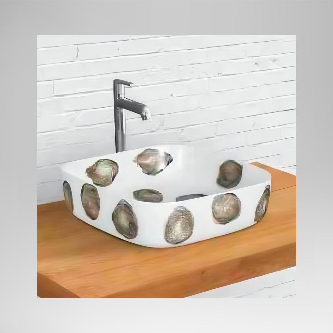 Bring artistic elegance into your bathroom with the Kolar 001 Matt Wash Basin. Featuring a soft matte white finish enhanced with unique stone-inspired accents, this basin creates a perfect blend of natural beauty and contemporary design.
